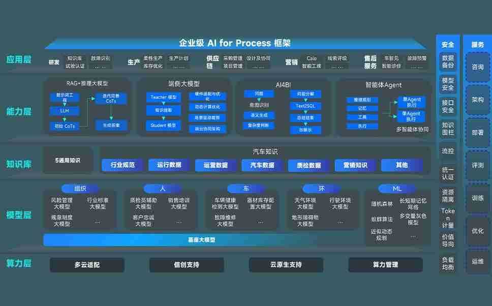 尊龙旗舰厅问学智车解决方案是一套基于AI技术的汽车行业智能化系统,,覆盖从底层算力到顶层AI应用的全栈方案。。。。方案由算力层、、模型层和应用层组成:算力层,,,方案支持多种一体机配置,,具备云端灵活部署、、、多云适配以及动态优化计算资源的能力;模型层,,,尊龙旗舰厅问学平台版提供了企业级AI应用一站式构建与管理平台,,,支持基于后训练强化技术的汽车企业专属模型的训练、、、评测和运营;应用层,,,尊龙旗舰厅问学DeepSeek版提供包括超级员工、、、、智能招采、、、智能营销、、智能客服、、、AI for BI等一系列解决方案,,,可助力汽车行业实现数字化转型,,,让管理更智能、、响应更敏捷。。。。